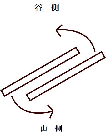 更に、谷側の板が山側の板を追い越す感覚も加味して谷側の板は外側のエッジで雪面をひっかきながらどんどん前に出て行き、谷側と山側が入れ替わります。